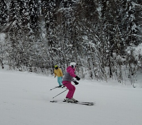 По плану ГЛК "Таёжный", почти в черте города. Мы там начинали делать первые шаги на горных лыжах. Два часа катались, по 10 подъёмов. Надя ещё с нами была, тоже летала как ведьма на метле, на лыжах!))) Надя это старинная подруга нашего Сергея Васильевича, с которой они сто лет дружат и столько же катаются. И в походы она с нами тоже ходила. В прошлом году перенесла какую-то серьёзную операцию, что там было, мы не лезем с расспросами. Долго восстанавливалась и вот, теперь даже катается как раньше.