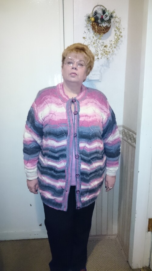 а вот как выглядит вблизи комбинация кружев крючком и вязанного спицами кардигана - один из видов окончания работы