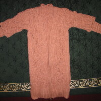 А вот серое пальто с косами (оно связано от ворота без единого шва) было распущено ПОЛНОСТЬЮ - я померила его кода до конца оставалось сантиметров 40 и увидела - о ужас! подмышкой пошла нестыковка рисунка при переходе на рукава - ошиблась и потянула эту ошибку..... долго уговаривала себя, что там не видно.... В моей борьбе с самой собой муж поставил точку, сказав - все равно носить не будешь если знаешь что ошибка, давай распускать....