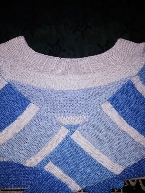 7.Никогда не лениться перевязывать, никогда не делать работу на авось (ну не так провязала петельку, ну не видно их же много, ну не очень ровно закрыла петли ну ничего, постираю и исправится, ну криво откетлевала в одном месте - ну не будет видно, вещь же темная ну и так далее.... Поверьте моему опыту, именно это делает вещь небрежной и кустарной. Резинка выглядит уже поюзаной вытянутой, ворот неаккуратен и т.д ( к стати, обратная сторона вещи должна быть так же абсолютно безупречна особенно в районе ворота. Я порой до 5 раз перевязывала при обработки того или иного ворота.